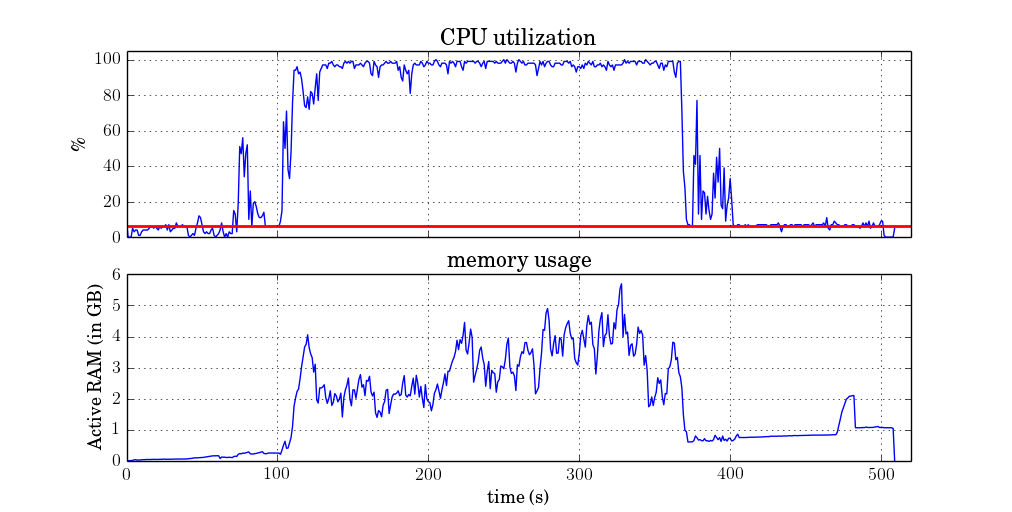 Here I present some data collected from vmstat plotted by a script by Martin Liška (who originally got the idea from Andi Kleen). Red line in CPU utilization graph shows the case where only one CPU is used.GCC 4.9
