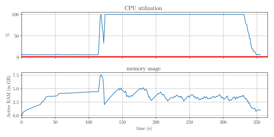 Here is a graph showing memory and CPU use during the link. It clearly separates the WPA serial stage from parallel ltrans. Note that Clang thinLTO chooses to use 8 threads rahter than 16. Increasing parallelism does not help build times because overall user time grows as well.